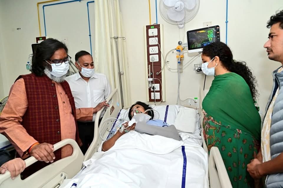 मुख्यमंत्री हेमन्त सोरेन विधायक कल्पना सोरेन आज एच०बी० रोड स्थित ऑर्किड अस्पताल पहुंचे, वहां उन्होंने सड़क दुर्घटना में घायल राज्यसभा सांसद डॉ० महुआ माजी से मुलाकात कर उनके शीघ्र स्वस्थ होने की कामना की। मौके पर मुख्यमंत्री ने ऑर्किड अस्पताल के चिकित्सकों से वहां इलाजरत राज्यसभा सांसद डॉ० महुआ माजी के चिकित्सा तथा स्वास्थ्य सुधार से संबंधित जानकारी ली।